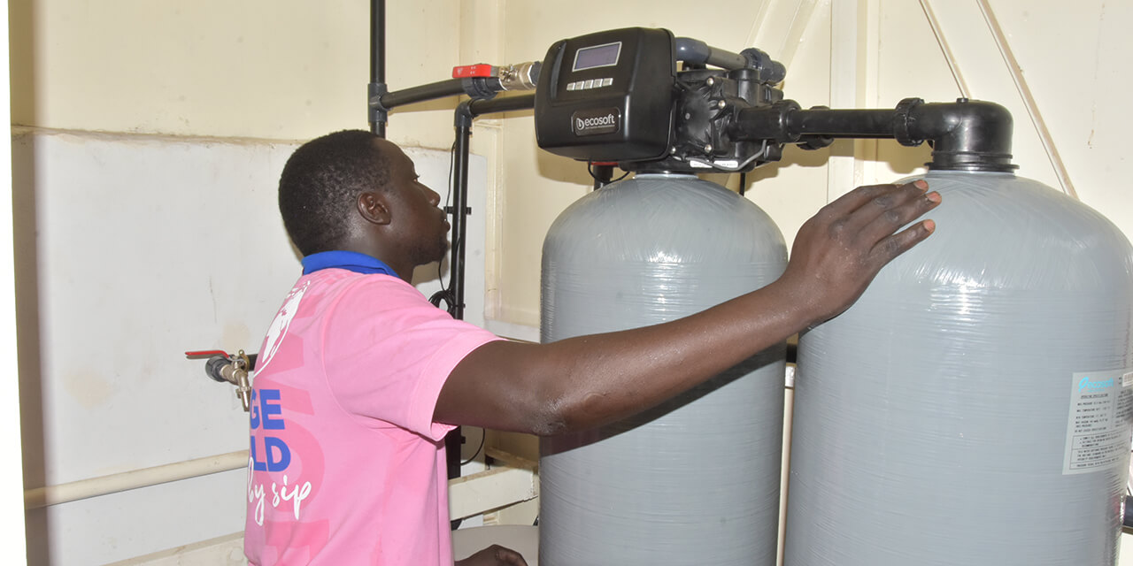 Construction included a technical room with a solar system. Based on microbiological and physicochemical analyses, a BWT Ecosoft system was installed, which removes the too high iron content in the water. With the new filter system, the drinking water now meets WHO standards and so two villages and 3,700 residents benefit from this new drinking water installation.